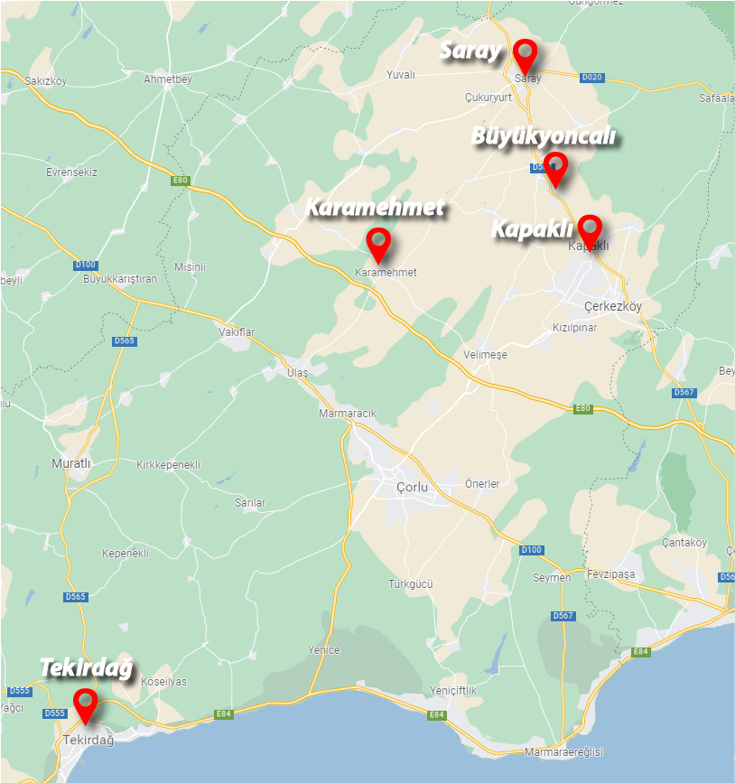 Tekirdağ ili, Saray kazası, Büyük Manika, Karamahmet, Kapaklı köyleri.